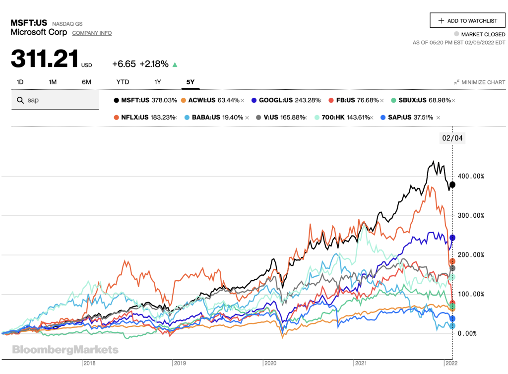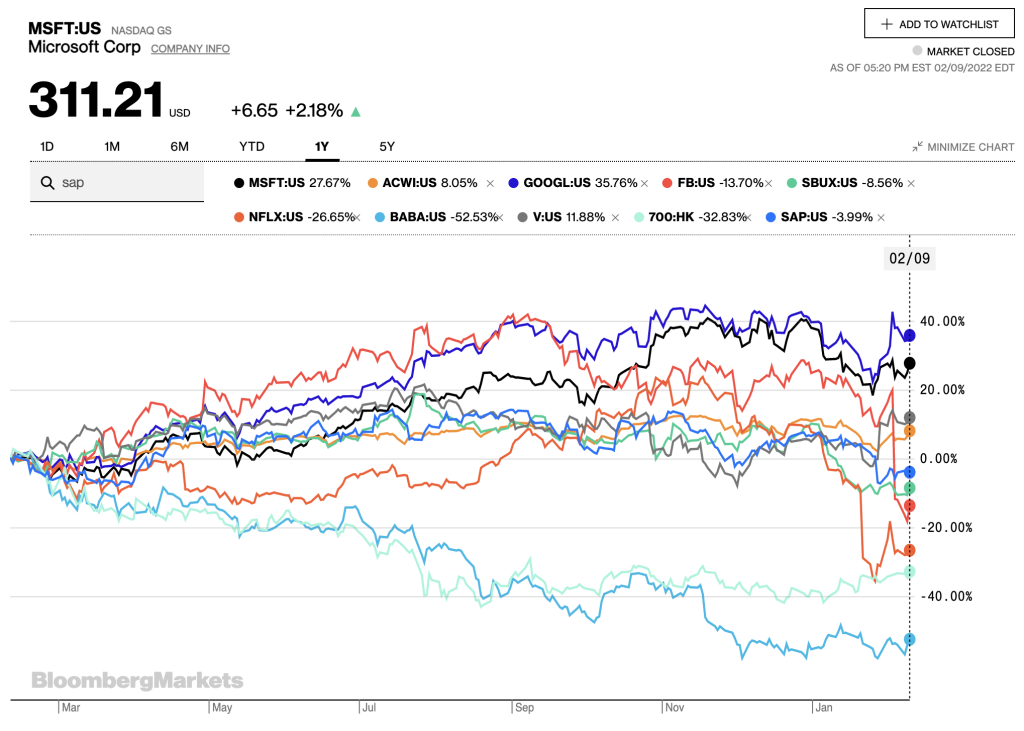 Incidentally, Facebook was holding up in performance until just recently but got sold off heavily after an awful fourth-quarter earnings report. But Facebook is now appearing as quite cheap on Fwd P/E of 15x and cheapest amongst the FAANG stocks – I guess the market is questioning Facebook’s ability to deliver 14% revenue growth and is questioning the expenditure going into Metaverse investment which if it works will pay off handsomely but it is a new frontier and rife with risks. Netflix has similar issues of stagnating growth, competition, and questions around the business model.